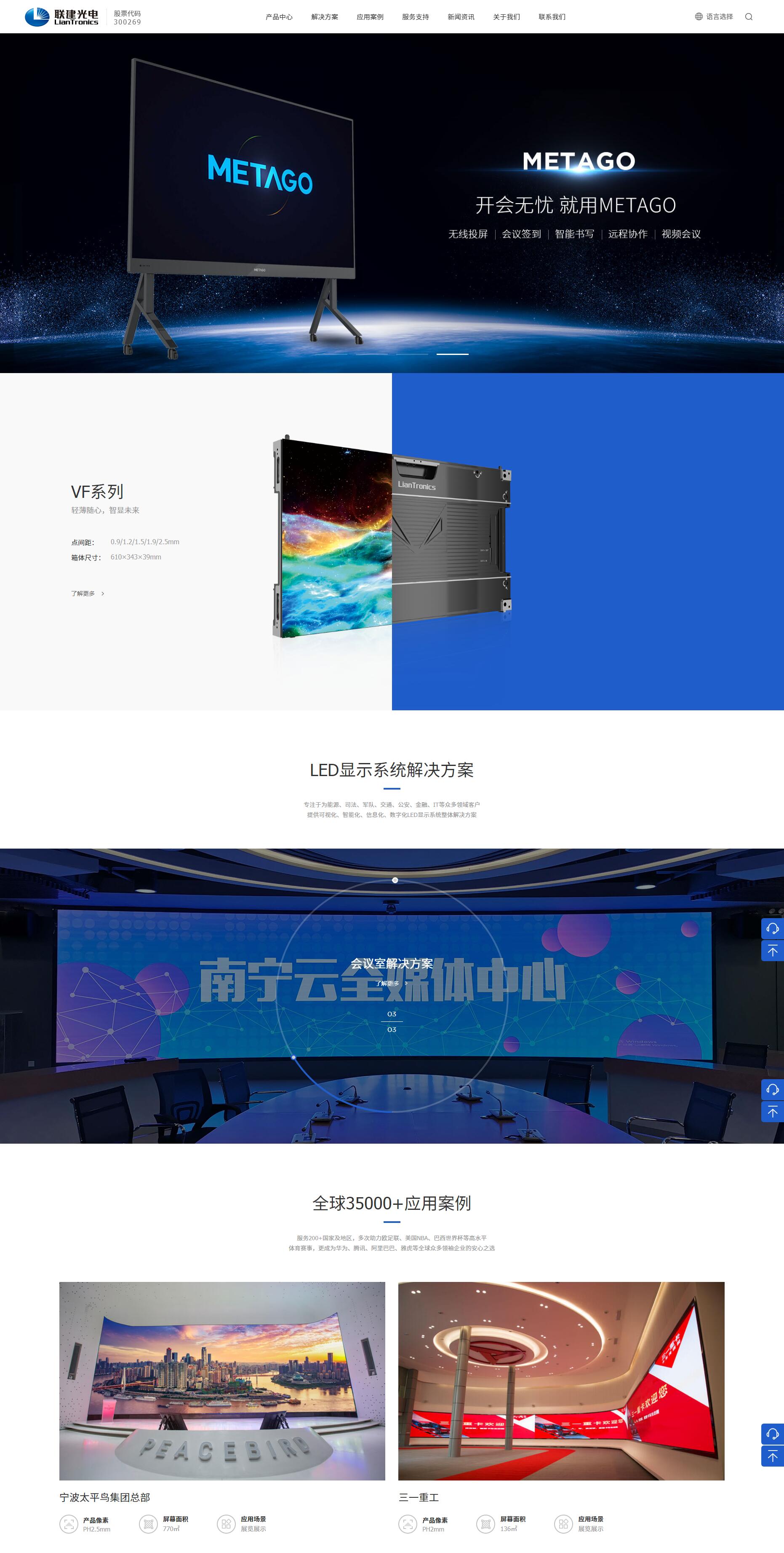 聯建光電成立于2003年,2011年成功在深圳交易所創業板上市,股票代碼300269,十余年間,公司已發展成一個員工超2400人,注冊資本5.91億元、合并年收入超30億元的國家級高新技術企業,現擁有已授權的國家專利200余項,并先后獲得安全生產許可證、鋼結構施工資質、系統集成資質并通過國軍標質量管理體系認證。