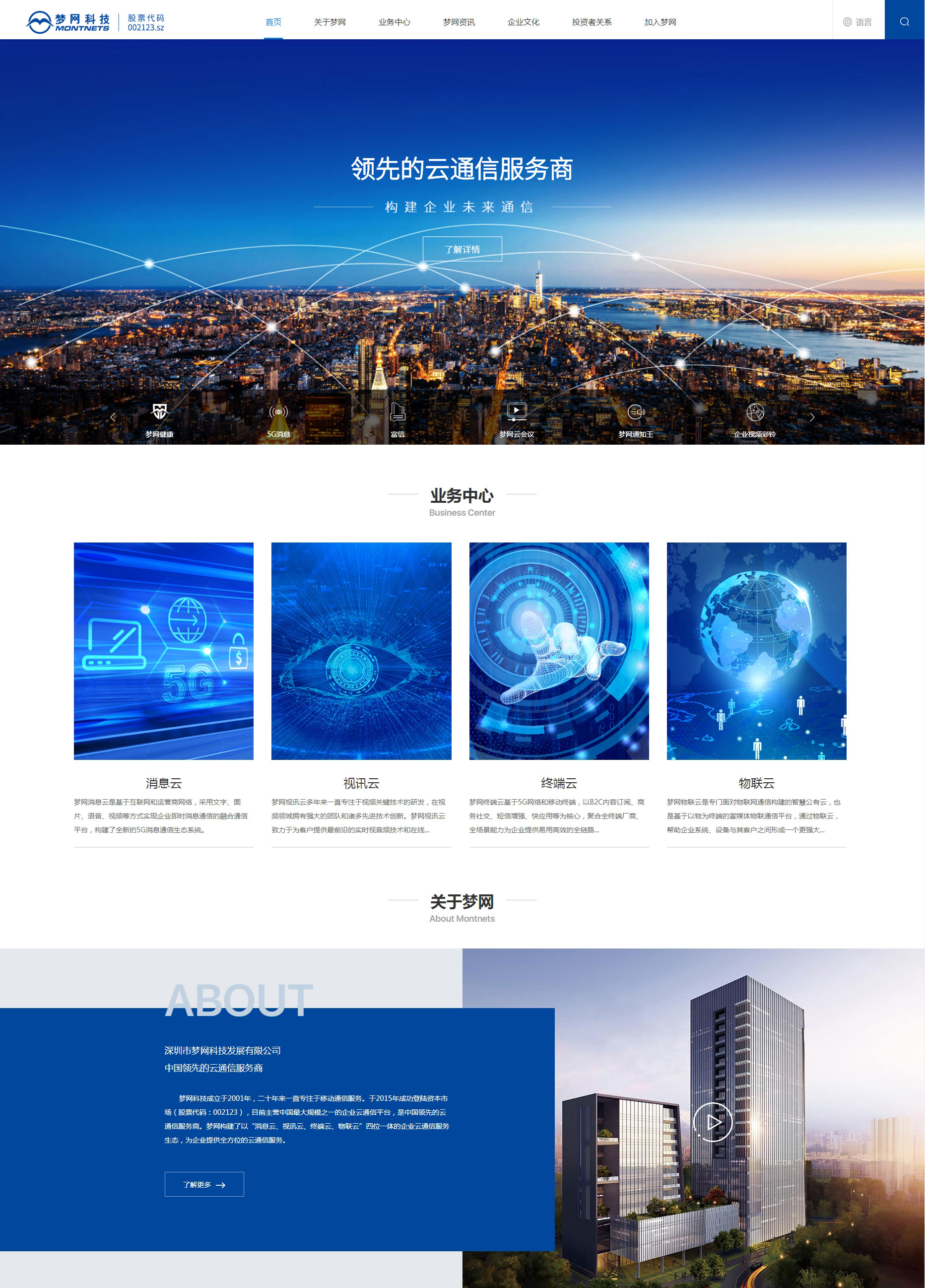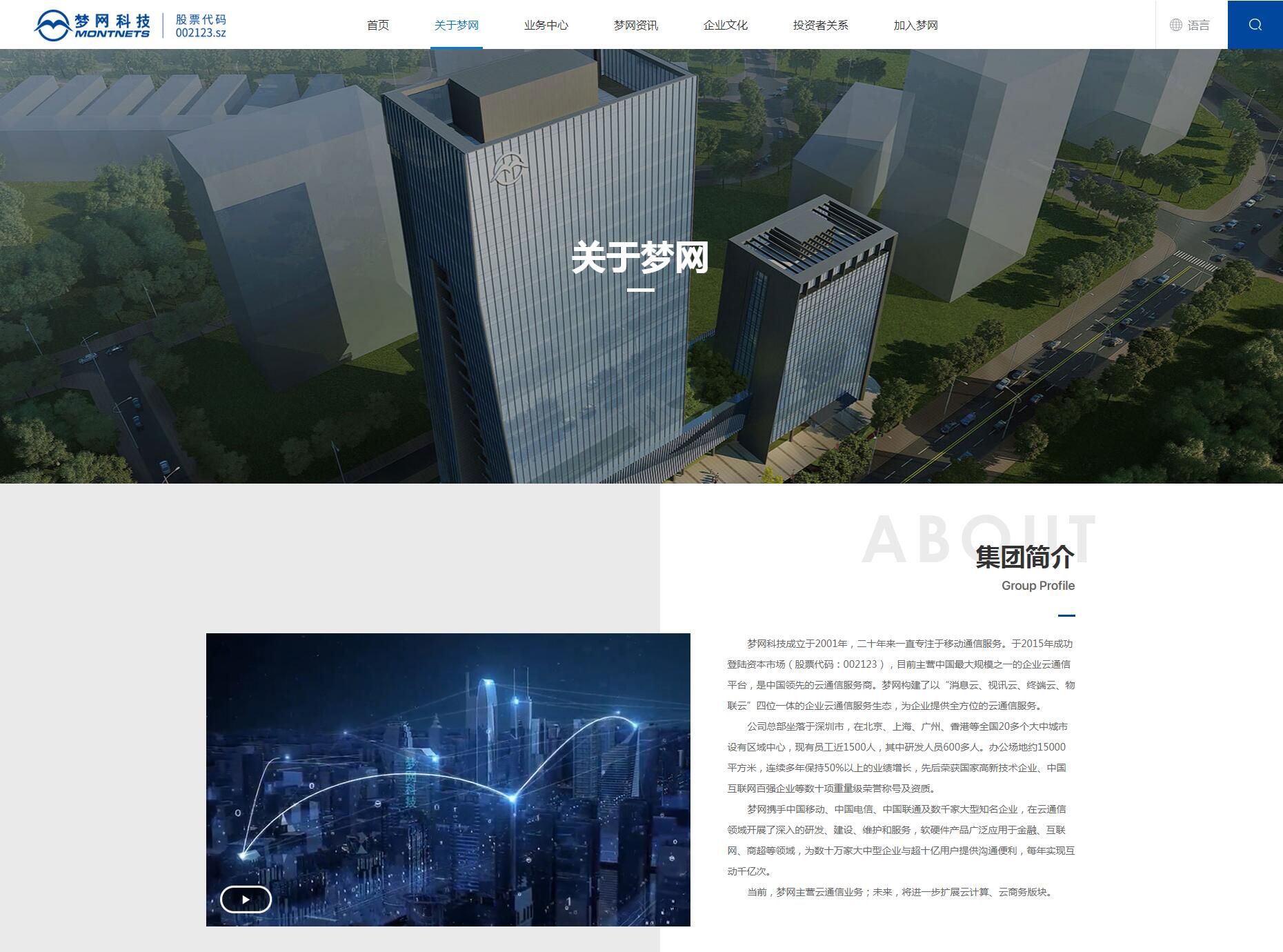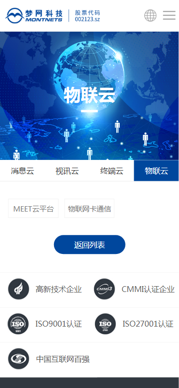 夢網科技成立于2001年,十七年來一直專注于移動通信服務。于2015年成功登陸資本市場(股票代碼:002123),目前主營中國最大規模之一的企業云通信平臺,是中國領先的云通信服務商。夢網構建了以“IM云、視頻云、物聯云”三位一體的企業云通信服務生態,為企業提供全方位的云通信服務。